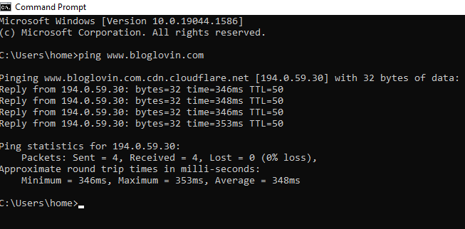 A basic ping to www.bloglovin.com indicated a response from Cloudflare’s DNS was okay however, this can’t rule out other possible internal issues or configuration problems.